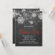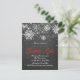 Convite de festa de Natal no quadro negro com giz branco rústico e texto vermelho em floco de neve. Este convite de festa de Natal com floco de neve preto e vermelho é facilmente personalizado para o seu evento, adicionando seus detalhes no estilo de letra e redação de sua escolha.