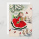 Natais vintages Rapariga Convite de festas: Uma menina bonita em um vestido de férias na floresta cantando para os pássaros e coelhos. Que fofo! Personalize-o adicionando um nome ou texto em qualquer lugar do cartão