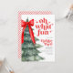 Convite para festas de Natal com árvore de Natal e arco vermelho. Que divertido!