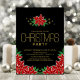 Compartilhe a alegria e convide seus amigos e entes queridos para a sua celebração de Natal com este elegante preto com texto de ouro poinsettia floral convite de festas de Natal.