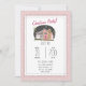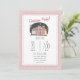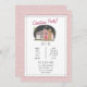 Ilustração de uma casa moderna, cor-de-rosa, decorada para o Natal com luzes de Natal, árvore de Natal e flores com neve no chão e palmeiras. A borda e os recursos do lado oposto inspiraram o padrão de estrelas rosa e branca.