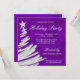 Convites de festas de Natal de prata e roxo. Um convite de festas moderno, com uma árvore de Natal prateada, foi lançado com uma estrela de fundo roxo. Personalize facilmente suas informações de evento.