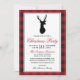 Convite de festas de Natal Rustic Deer Elk Xadrez de Buffalo Vermelho
