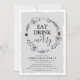 Convide amigos, família ou colegas para comemorar a temporada de festas com estes elegantes convites de festas de natal rusticados. Design apresenta os detalhes do seu evento em caracteres latinos, com uma ilustração com aquarela de uma coroa rústica botânica e a tipografia 'Coma Bebida e seja Feliz'. Personalize este convite elegante com o seu tipo de evento, fazer perfeito para festas de Natal, reuniões de férias, eventos corporativos, festas de coquetéis de férias e muito mais!