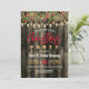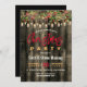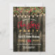 Cartão de convite para festas de Natal Rustic Country. Convites de festas de inverno de natal russos apresentando madeira e luzes de Natal com fundo verde, Personalize os detalhes sobre os divertidos convites de festas de Natal de campo rústico para sua próxima celebração. NOTA: Estes são gráficos impressos - sem brilho real, joias ou peças levantadas