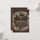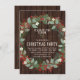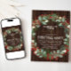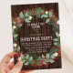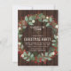 Floresta festiva, coroa e bagas com fundo de madeira rústico, convites de festas de Natal rústicos. Estes convites de festas de Natal de país charmoso, à moda antiga, são facilmente personalizados para o seu evento simplesmente adicionando os seus detalhes no estilo de letra e cor, e a redação da sua escolha.