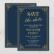 Convites elegantes de Natal Salve a data Marinho Dourado chique moderno
