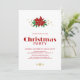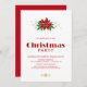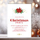 Compartilhe a alegria e convide seus amigos e entes queridos para a sua celebração de Natal com este na moda branco com texto vermelho e um convite de festas de Natal de poinsettia vermelha.