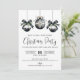 Convide convidados para a sua festa de férias com este convite divertido, ainda que minimalista, para o tema do Enfeites de natal. A design apresenta três elegantes ornamentos de aquarela preto e branco no topo, com cada verde-verde e detalhes do arco, criando um olhar festivo e sofisticado que capta o espírito da estação. Uma mistura de roteiro e tipografia serif adiciona um toque de na moda, equilibrando elegância com uma vibração divertida. A cinza escura e a faixa branca oferece uma reviravolta moderna que pode ser personalizada para corresponder à sua visão única. Perfeito para qualquer reunião de férias, este convite é perfeitamente personalizável para se adequar ao seu evento, seja uma família casual se reunindo, uma festa de escritório ou uma celebração mais formal. O seu design de chic garante que se destacará e dará o tom para a sua ocasião festiva. Enfeites de natal decorativos de Convite de festas de Natal preto e branco elegantes Moderno simples disponível como um convite impresso ou um arquivo digital para download, esta opção facilita o compartilhamento com seus convidados, seja por e-mail ou por impressão local!