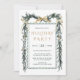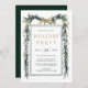 Este convite elegante para festas de férias apresenta uma granja de Natal com cor d'água (quadro) acentuada por amoras ocas e arcos de fita encantadores.