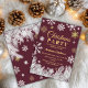 Este elegante Convite de festas de Natal apresenta um fundo vermelho adornado com intrincados flocos de neve brancos e ouros. Ramos de pinheiro fosco espumante na parte inferior, adicionando um encanto do inverno. A design cria um sentimento festivo, porém sofisticado, perfeito para uma celebração de feriado.