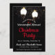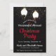 A cena natalícia eterno de luzes brilhantes com flocos de neve brilhantes em seu brilho contra um céu negro da noite ilumina seu convite preto, branco e vermelho para uma Festa de Natal. O texto do convite está em fontes contrastantes - sans serif e script. A "Festa de Natal" está em vermelho para combinar com as decorações vermelhas das duas lâmpadas. O resto do texto é branco. A parte traseira do cartão é simplesmente preta e está disponível se você quiser adicionar instruções para seus convidados. É fácil trocar as informações de sua parte pelos marcadores de posição. Basta clicar no link "Personalizar". Festa o Natal e durante o período de férias de inverno com estes convites que lhe permitem reformular a palavra para o seu evento único.