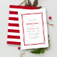 Simples convite para festas festivas com uma tipografia minimalista com uma dupla borda chic em torno dela em temas de cor branca e vermelha. Você pode adicionar seus próprios detalhes facilmente clicando em "Personalizar este modelo". No verso há listras vermelhas e brancas correspondentes. Peça agora e crie memórias que duram além dos feriados!