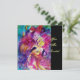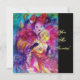 Colorido noturno veneziano com um caráter expressivo e romântico: violinista caprichoso com fantasias cor-de-rosa fúcsia cintilantes e penas e uma coruja engraçada sob a luz da lua, com uma linda rosa vermelha dourada no verso do cartão. Pintura em aquarela em cores vermelhas, verdes, azuis e amarelas brilhantes, com brilhos dourados, inspirada em Piero (Pierrot), Comédia da Arte (Commedia dell'arte) e Carnaval de Veneza. É um lindo cartão de anúncio para feriados, festas a fantasia de Mardi Gras, ocasiões especiais, festas de aniversário infantil, festa de 16 anos, baile de máscaras de Ano Novo, Dia dos Namorados, aniversários, reuniões e praticamente qualquer evento que você deseje!