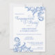 © Socialite Designs Inc. Celebre seu noivado com elegância de eterno! Nosso convite de festa de noivado personalizável apresenta lindas espirais de canto e floresces, pintados em cor azul-real macia. O design de colheita, colocado sobre um fundo de papel branco, complementa perfeitamente a coleção de casamento correspondente. Este convite é ideal para qualquer celebração do ano, acrescentando um toque de sofisticação e charme ao seu evento especial. Personalize-o com seus próprios detalhes para torná-lo verdadeiramente único!