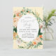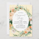 Lindos convites para festas de noivado com um elegante tom pastel neutro e neutro molhado de cor aquática quadro floral botânico em tons suaves de pêssego, laranja, pincel suave, amarelos e muitos tons de verde de sábio verde a verde brilhante e profundo. Seus detalhes personalizados são exibidos em um elevado layout tipográfico que coloca o convidado de honra em frente e no centro.