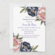Celebre seu dia especial com este elegante convite de casamento de aquarela com peões roxos e azuis marinhos, lindamente acentuados com detalhes de ouro luxuoso. Perfeito para casamentos modernos, românticos e eternos, este design floral dá o tom para uma celebração de chic e na moda. Personalize facilmente com os detalhes do seu casamento para criar um guardião que seus hóspedes vão tesourar.