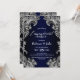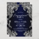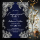 Convide seus amigos e entes queridos para sua festa de noivado com este elegante e branco lace preto e azul convite para se juntar a vocês dois para celebrar suas boas notícias.
