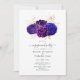 Convite para festa de noivado floral real azul, violeta e roxo com acentos de dourado de folha falsa personalizável de acordo com as suas especificações de evento.