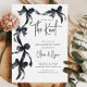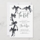 Anuncie sua história de amor com elegância usando nosso belo convite para Noivados arcos pretos. Este incrível convite para noivados apresenta arcos de fita pretas encantadores em estilo coquete, capturando perfeitamente a essência do romance e da sofisticação. Criado com atenção aos detalhes, ele dá o tom para seu dia especial, convidando seus convidados a comemorar o início de sua bela jornada juntos. Faça uma impressão duradoura com este design de eterno que reflete seu estilo e compromisso exclusivos.