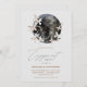 O design apresenta um tema elegante da lua celestial, colocado sobre um fundo de cinza aquática macio, criando uma atmosfera mística e moderna. No centro de cima, uma lua delicada com intrincadas ilustrações de flor silvestre e borboleta, evoca uma sensação de beleza natural e capricho.