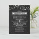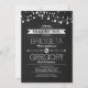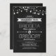 Convite para festa de noivado de quadro negro, com fio de luz e tipografia moderna decorada com setas de amor e acompanhada de faixa angustiada. Convite perfeito para o tema de festa de noivado rústica com sotaques de luzes cintilantes.