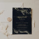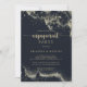 Este convite de festa de noivado de ouro de aquarela é perfeito para um evento rústico. O design apresenta uma abertura dourada pintada manualmente em um fundo azul escuro.