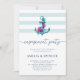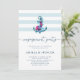 Celebre o seu amor com este convite à festa de noivado náutica, com uma âncora e flores num fundo de listras azul e branca. Texto totalmente personalizável o torna perfeito para eventos de praia ou de temas costeiros.