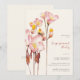Convite à festa de noivado com Flores de Bottercups Rosa. Flores desenhadas à mão num fundo cor de laranja brilhante e vermelho. Pintura floral de aquarela de Ornamentado brilhante. Abstrato com pano de fundo com Flores de Buttercups. Flores elegantes venenosas, design floral de outono ou verão, campo romântico. Um enredo botânico. Convite à Festa de noivado de Botânica. Coleção de Bottercups de Verão Brilhante.