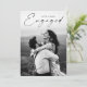 Anúncio de Festas de noivado de Casamento Fotográfico de Script Moderno. O verso inclui detalhes adicionais para convites de festas e/ou informações do registro. Clique no botão personalizar/editar para personalizar este design com suas fotos e detalhes.