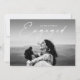 Anúncio de Festas de noivado de Casamento Fotográfico de Script Moderno. O verso inclui detalhes adicionais para convites de festas e/ou informações do registro. Clique no botão personalizar/editar para personalizar este design com suas fotos e detalhes.