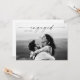 Anúncio de Festas de noivado de Casamento Fotográfico de Script Moderno. O verso inclui detalhes adicionais para convites de festas e/ou informações do registro. Clique no botão personalizar/editar para personalizar este design com suas fotos e detalhes.