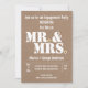 O Sr. e a Sra. Modern tipografia de papel kraft de papelão convite para festa de noivado de casamento. Mostra os títulos de cortesia do Sr. e da Sra. e o amante em branco e o período em branco com um coração de amor dourado nele.