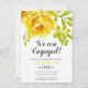 Primavera e convite para festa de noivado floral de casamentos florais de e cactus amarelos. Apresenta um buquê encantador de flores de cacto em folhas amarelas e suculentas. A parte de trás é de cor verde sólida.