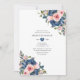 A festa de noivado floral cor-de-rosa e azul-marinho da tendência convida-a a ser personalizável para as suas especificações de evento.