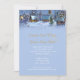 Natal vintage convite para festa de noivado de férias. Elegante, pacífico e tradicional, perfeito para as suas festas de férias. Uma imagem pacífica do mundo da neve do inverno, de neve branca, ponte de madeira, rio de gelo, árvores cobertas de neve e casas familiares quentes, fará seu cheio especial de bênçãos de Natal.