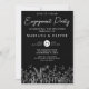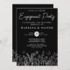 Festas de noivado de flores silvestres negras e brancas com flores em uma linha moderna. Personalize nomes, datas e informações.