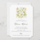 Cores d'água elegantes flores silvestres de verão, convite para festas de noivado. Design de cartão, flores de verão delicadas e folhagem em tons de verde, branco, amarelo, rosa e azul. Modelo de tipografia elegante. A parte traseira da carta, mostrada na coordenação da cor verde-sábio, pode ser personalizada.