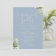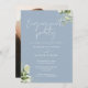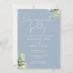 Este elegante convite para festas de noivado floral azul empoeirado pode ser personalizado com as suas informações em tipografia química com a sua fotografia no verso. Projetado por Thisnotme©