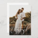 O Convite para Festa de noivado de Fotografias de Script de Caligrafia de Orçamento apresenta uma cobertura moderna de script de caligrafia, juntamente com os detalhes do seu partido no verso.