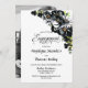 Convide seus amigos e entes queridos para a sua festa de noivado com este moody convite para festas de noivado florais pretas que apresenta uma imagem do feliz casal no lado oposto.
