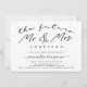 O moderno, moderno, moderno e simples convite de festa de noivado contém o script '' future mr and mrs'' em letra manuscrita, casais nome futuro e detalhes da festa. Adicione a foto favorita do casal atrás.