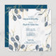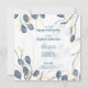 Simples e chique, este design de convite para Festas de noivado elegante é a forma perfeita de convidar a celebração do noivado da sua irmã, filha ou amiga. Apresenta ramos de eucalipto azuis, pintados manualmente, com folhas de ouro na frente. A parte de trás apresenta a folhagem dourada sobre um fundo azul. Toda a tipografia azul pode ser alterada para o ajustado das necessidades de planejamento do seu partido. Tem acessórios correspondentes ao chá de panela ajustado, janto de ensaio, cartões de solicitação de damas de honra e até convites para casamento.