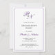 Convite de festa de noivado clássico com um simples design com seus dois monogramas iniciais e seus nomes em um elegante dentro de caligrafia roxa real de uma borda fina. A parte de trás é roxa sólida. Este design clássico é perfeito para uma festa de noivado formal no outono/outono.