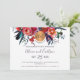 Coral vermelho, marinho azul e índio escuro, buquês de flores boêmicas e um círculo redondo de ouro metálico monograma de cobre fazer um convite de festa de noivado horizontal de glama moderno com um desenho de tipografia totalmente editável por um quadrinho. +++++++++++++ Fácil de personalizar com seus detalhes! Adequado para festas de casais de jardim - outono de verão ou outono.