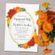 Flores de outono, cor de laranja e douradas, que delimitam o círculo dourado com eucalipto e verde botânico para um evento de queda