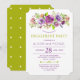 Modelo de convite à festa de noivado elegante, russo, com um pastel boho violet, lilac, roxo, magenta e pincel cor-de-rosa, com folha de cor verde-salgada e verde-salgada e letra de guião. Preencha suas informações nos pontos, Você pode optar por personalizá-las alterando as fontes, as cores das letras ou a cor do plano de fundo no verso. — O convite é adequado para primavera ou floral chic de verão | festas modernas de chás casais, festas de noivado ou janto de ensaio de casamentos no país rústico do jardim. — Se você precisar de assistência com o design, por favor, entre em contato comigo!