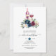 Convite para provando de vinho de festa de noivado de caserna de aquarela, com marinho azul, branco e marrom e rosas com tipografia elegante de escrita manual.