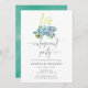 O provando de vinho de festa de noivado floral de mint e boho azul convida com penas de pavão concebidas para serem rápida e facilmente personalizadas.