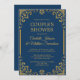 Convites Festa de noivado de quadro Dourado azul do Marinho